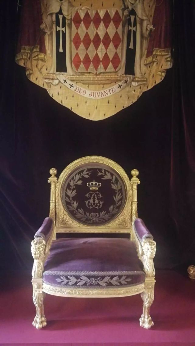 位于王宫宴会厅的摩纳哥亲王御座。(央视记者黄京辉拍摄)