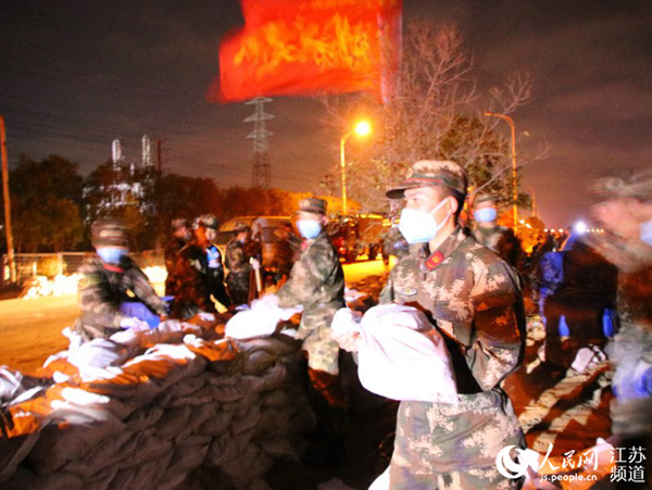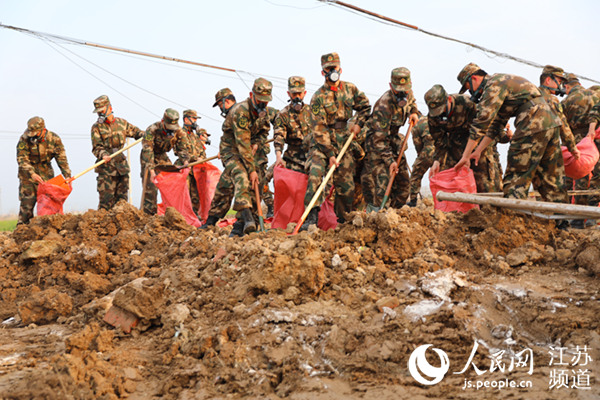 人民网盐城3月29日电(尹晓宇、赵茂钦)为应对雨情和汛期到来后可能出现的次生灾害,29日,武警某部300多名兵力继续全力投入响水“3·21”特大爆炸事故核心区围堰构建工作。据了解,爆炸形成了一个直径170米、深约2米的大坑,坑内积有成分复杂的化工废水。