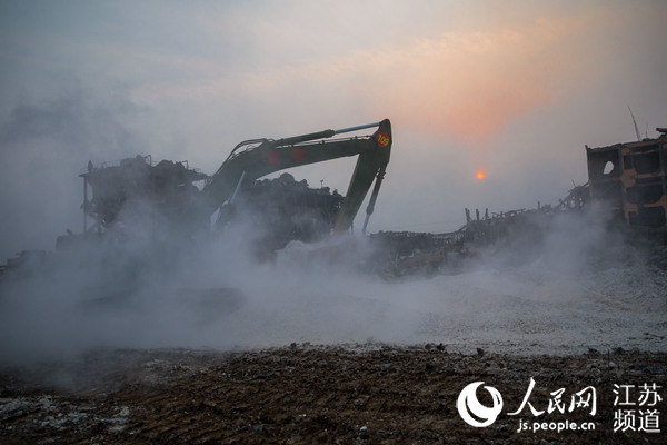 按照上级统一部署,事故核心区爆炸区及新民河两侧子围堰构建工作已经启动。武警某部运用交通、工兵、防化等救援专业力量从27日下午开始作业。28日夜,官兵们克服夜间温度低、作业环境差的困难,采取多点展开、分段作业、轮番上阵的方式组织实施,仅当晚就装填垒砌沙袋11000余袋。29日17时10分,该部组织挖掘机、推土机进场,为后续围堰构建、爆炸坑回填顺通道路。截至发稿,围堰构建工作仍在进行。