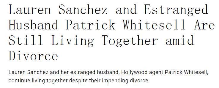在与现任丈夫协议离婚期间,桑切斯一直与亚马逊CEO贝佐斯保持恋情。但据线人消息,桑切斯与疏离的丈夫(好莱坞金牌经纪人怀特塞尔⋅帕特里克)依旧住在同一间房子里。