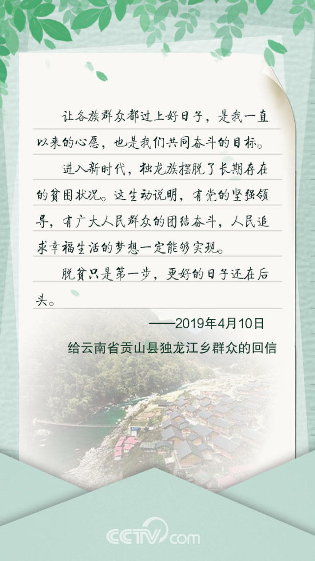 【联播+】习近平总书记10日给云南省贡山县独龙江乡群众回信,祝贺独龙族实现整族脱贫,勉励乡亲们为过上更加幸福美好的生活继续团结奋斗。