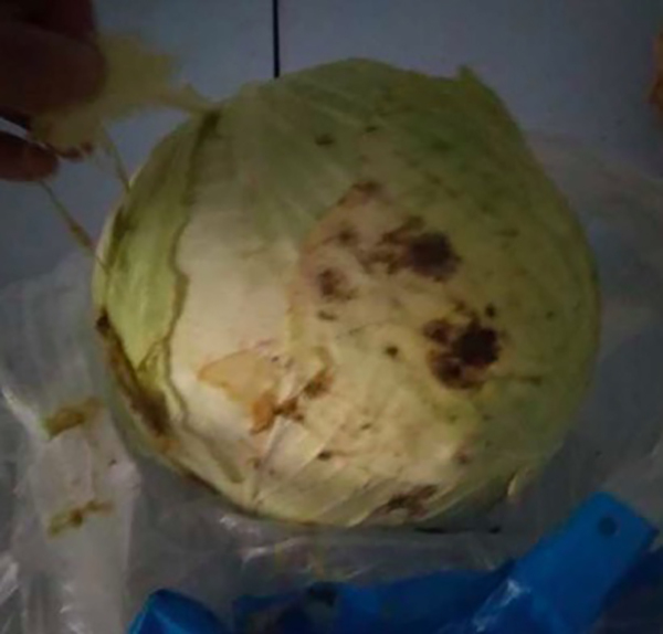 家长发现的疑似变质食材。