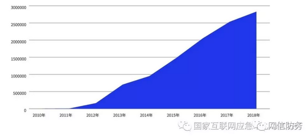 图6 2010年至2018年移动互联网恶意程序捕获数量走势
