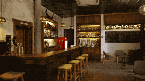 一楼的酒吧是原来养鸡、鸭、猪的地方,重建之前已经破败不堪。爱德华把它设计成一个英式酒吧,里面放了茶壶、水晶杯,都是爱德华妈妈专门从英国背过来的一些传家宝贝。