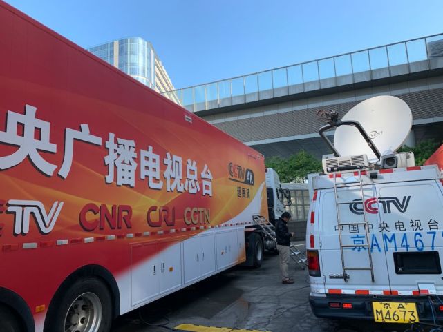 中央广播电视总台的高清转播车已在会展中心外驻扎多日。(央视记者王志明拍摄)