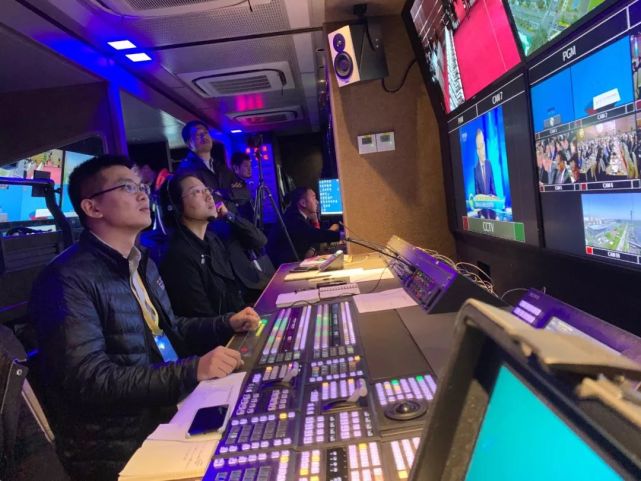 转播车内紧张有序。对高峰论坛开幕式的直播即将开始。(央视记者张淳拍摄)