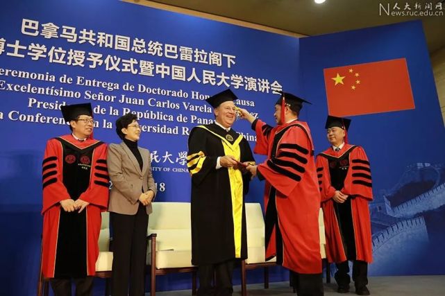 这是2017年中国人民大学授予巴拿马总统巴雷拉名誉博士学位。(资料图片)