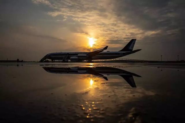 这是26日清晨泰国总理巴育的专机抵达北京。(央视记者郝亮拍摄)