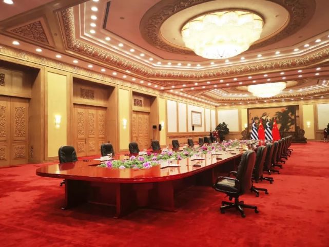 仪式结束后,两国元首来到友谊宫聚贤厅举行双边会谈。