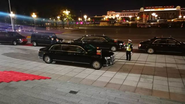 前来参加欢迎宴会的外方领导人车队陆续抵达人民大会堂东门外。(央视记者韩锐拍摄)