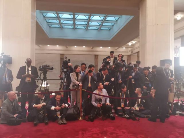 下午五点,中外记者就在抢占拍摄迎宾仪式的位置。(央视记者张宇拍摄)