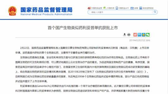 汉利康由上海复宏汉霖生物制药有限公司(下称“复宏汉霖”)研制开发,主要用于非霍奇金淋巴瘤的治疗,今年2月25日获国家药监局批准,是国内获批的首个生物类似药。