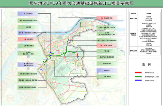 2019年度紫东地区重点交通基础设施新开工项目示意图。(点击看大图) 南京官方供图