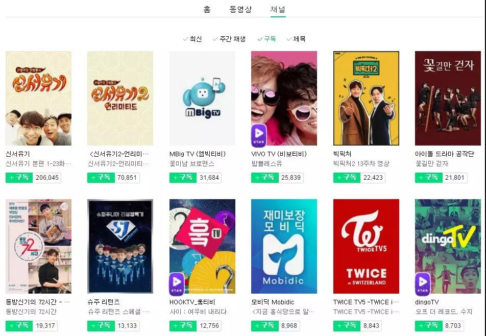 Dingo频道可谓是目前韩国势头最火的视频创意工厂,经营范围包括创意内容制作、广告、演艺经纪等,旗下按照不同领域分为Dingo音乐、美食、美妆等共27个不同频道,粉丝的订阅数高达3500万名,被评为韩国明星最想合作的频道之一。类似于Dingo这类商业化的自媒体频道还有YOONTV、Amigo TV、AKA TV等众多平台,除此之外一些个人博主、网红等也会将自己的作品上传至NAVER TV。