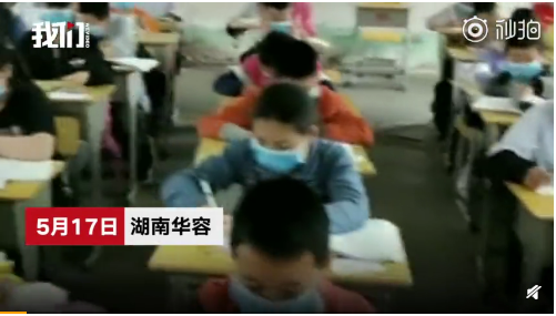 窗外飘来恶臭 湖南华容小学生戴口罩上课