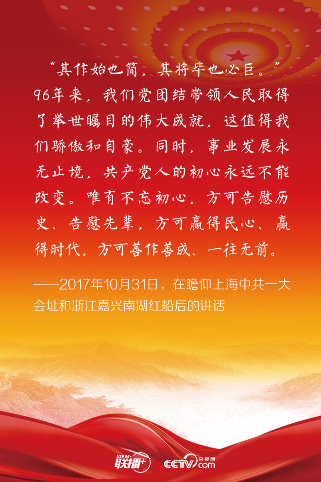不忘初心,方得始终。在纪念中国共产党成立95周年大会上,习近平总书记向全党郑重发出“不忘初心、继续前进”的号召。此后,他在许多场合都谈到中国共产党人的初心和使命,并为新时代的奋斗征程指明了方向。央视网特整理,与您一起学习理解总书记始终不渝的初心。
