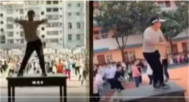 近日,陕西城固县集灵小学的体育老师,为带领2000多个小朋友更好的做课间操,亲自站上桌子舞台,带全校师生一起跳魔性的舞蹈。