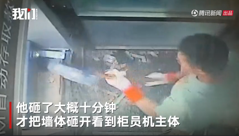 河南一男子挥舞锤子“专注”砸ATM机 钱还没到手警察就来了