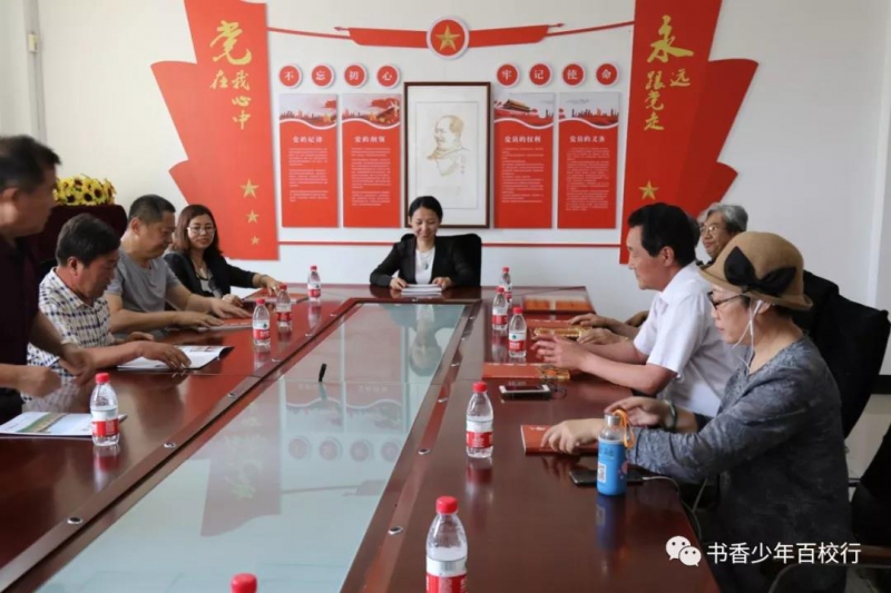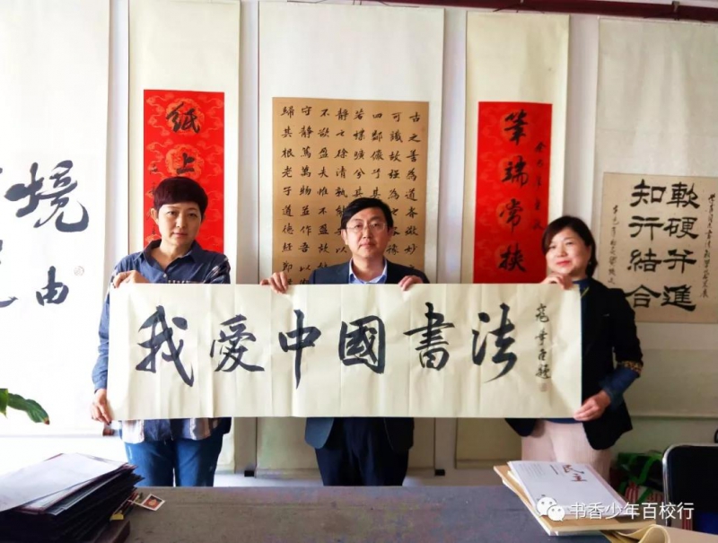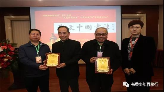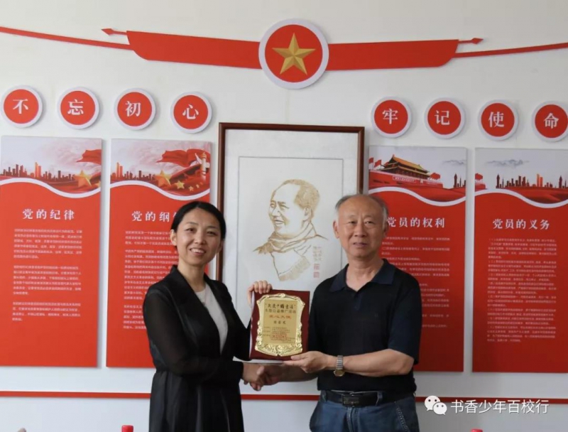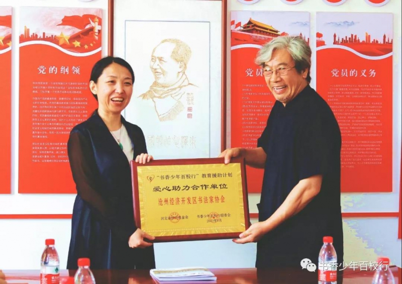 2019年6月14日下午,“携手同行,不忘初心”,河北省沧州开发区书法家协会正式成为“书香少年百校行”活动第八家助力单位,书香少年百校行艺术顾问韩秋来先生(右)和陈家芝主席(左)在书协主持举行了挂牌仪式。