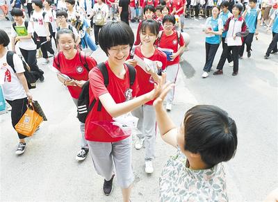 6月21日,在石家庄市第二十二中学考点,考生们信心满满进入考场。 记者 史晟全摄