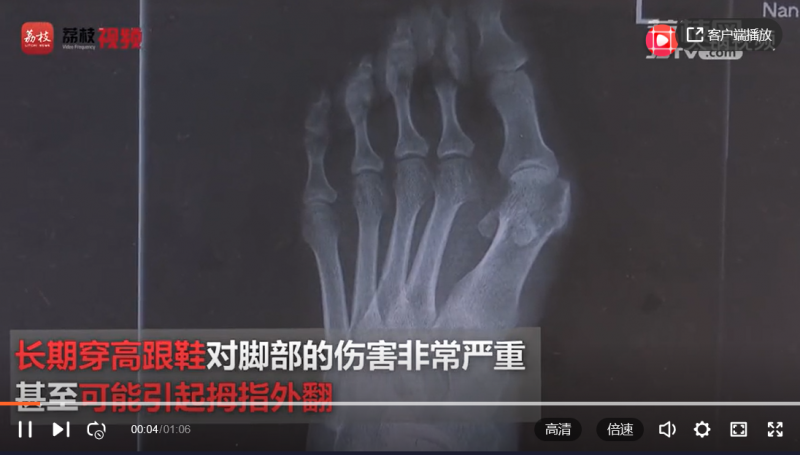 【女孩们注意了:#迷恋高跟鞋后果堪比裹脚#】现在很多女性朋友因为爱美或者职业的原因,喜欢穿高跟鞋,但你知道吗,长期穿高跟鞋对脚部的伤害是非常严重的,甚至可能引起拇指外翻。王女士就不幸中招了,不得不通过外科手术来矫正。