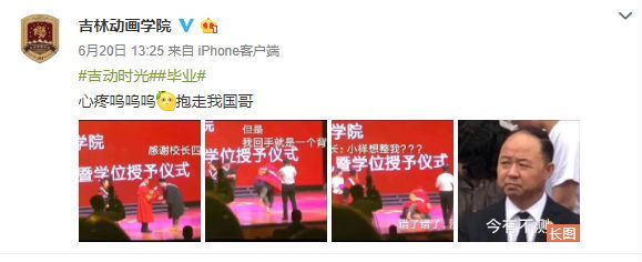 吉林动画学院官方微博也p了被摔校长的表情包做回应。