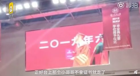 说时迟,那时快,不一会儿,回过神来的小哥突然又冲回校长身边,一把“抢走”校长手中的毕业证书,撒腿就跑。