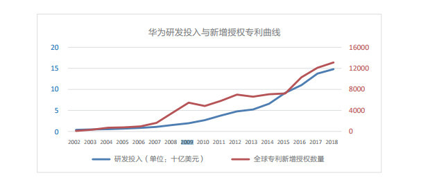 华为在5G、知识产权方面取得的成绩与公司重视技术创新与研究密不可分。华为坚持将每年收入10%以上,近年约15%投入到研发。