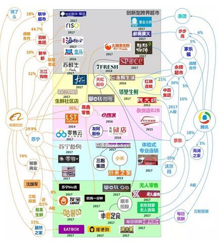 这场由互联网公司、头部零售企业发起的2017年零售行业的多起并购,展现了一个不一样的中国零售业图景:外资式微、台资卖身、内资崛起,以阿里、腾讯为首的互联网企业已经深度介入传统零售,并通过不同的路径加速对行业的重塑。