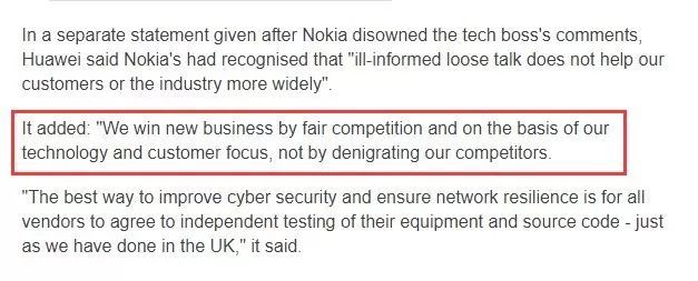 至于华为方面的看法,BBC最初这篇报道曾提到,华为的一位发言人否认其设备会带来安全风险。这名发言人还表示诺基亚这位高管的言论具有“误导性”。