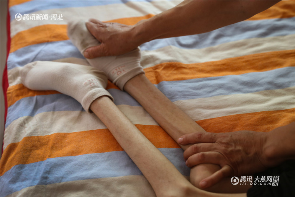 因为没有系统读书识字,刘帅飞仅仅靠着电视剧上的字幕识字。刚开始接触电脑,刘帅飞也不知道怎么打字,完全靠自己摸索,一个键一个键试出来每个字的输入方法,最终摸索出规律。图:因为发育不完全,刘帅飞的腿还没有母亲的胳膊粗。
