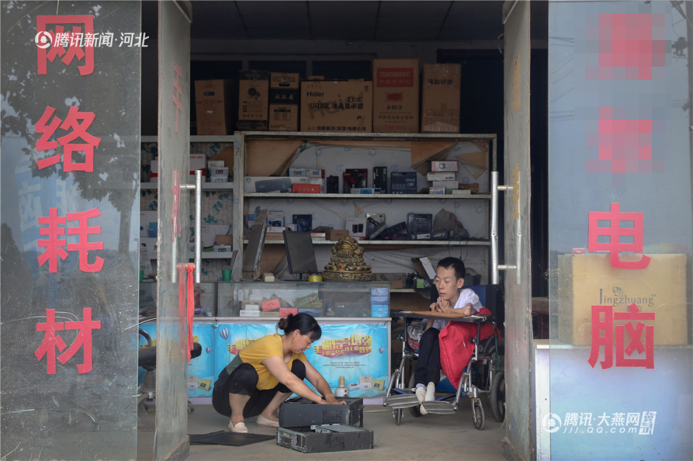 电脑坏得多了,刘帅飞渐渐就会处理一些毛病了,他买来系统盘、不同的硬件,也是靠着自己的摸索,他开始指挥着母亲,二人合力维修电脑。后来,他们在村里开了一间维修店,帮助乡亲们修理电脑。“母亲就是我的手,我只负责说,她来操作。”刘帅飞告诉我们,这间店其实并不赚钱,乡里乡亲的,处理点小毛病都不好意思要钱。