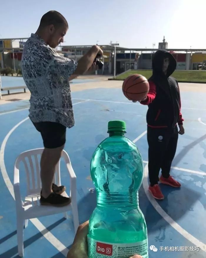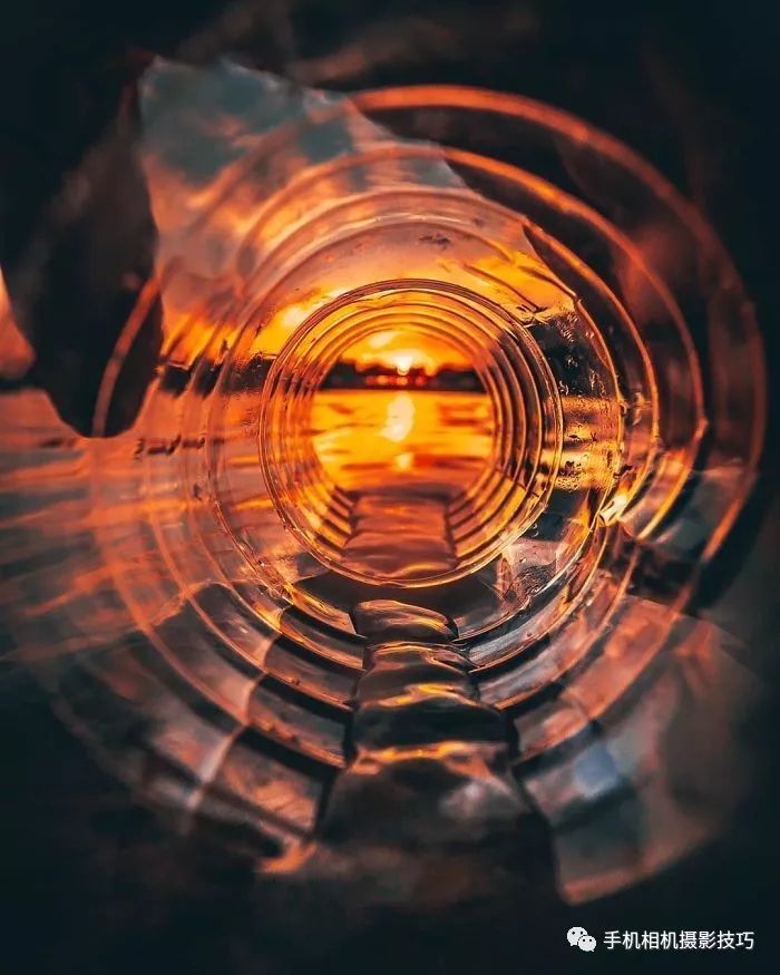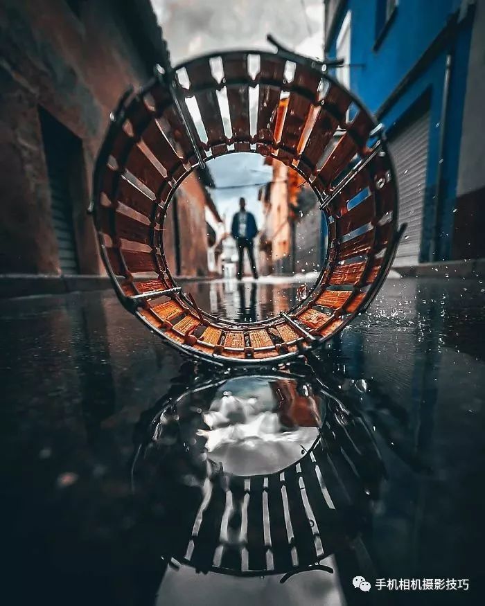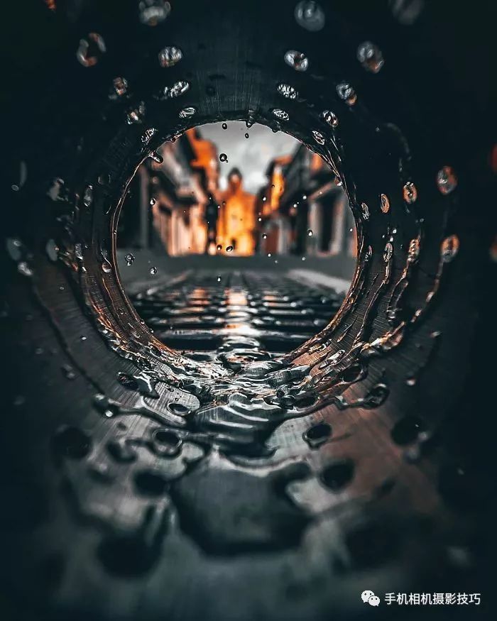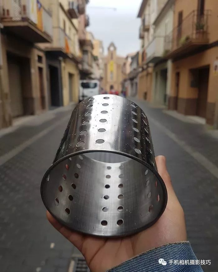 其实水是前景拍摄时非常有趣的搭配元素之一,比如,使用一个带窟窿的圆筒(看着很像宜家的餐具桶,不知道是不是被锯掉了底)。