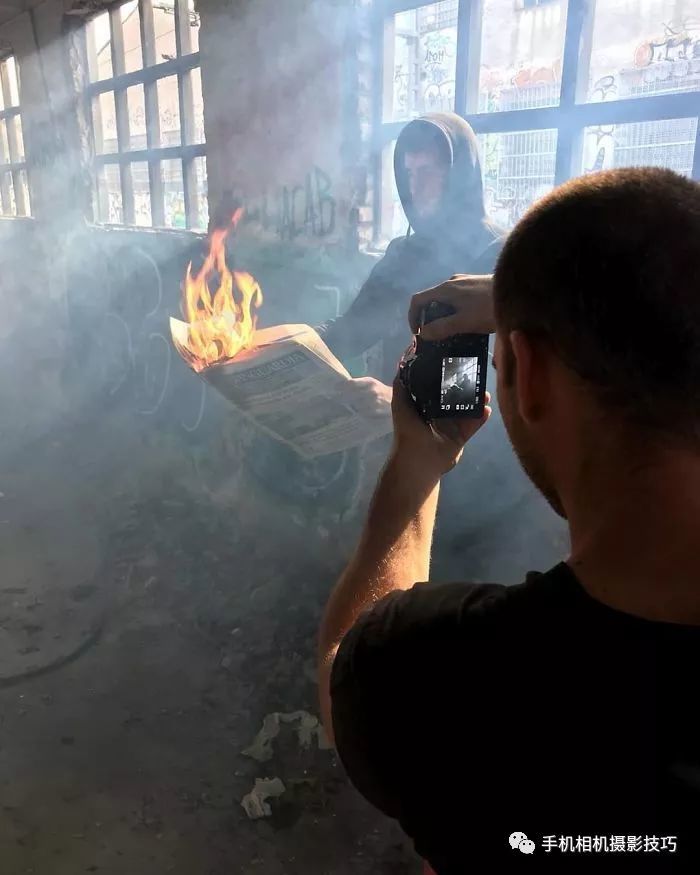 比如模特手中拿着的燃烧的报纸,你一定以为是后期P上去,但实际上,这是实打实拍摄出来的。