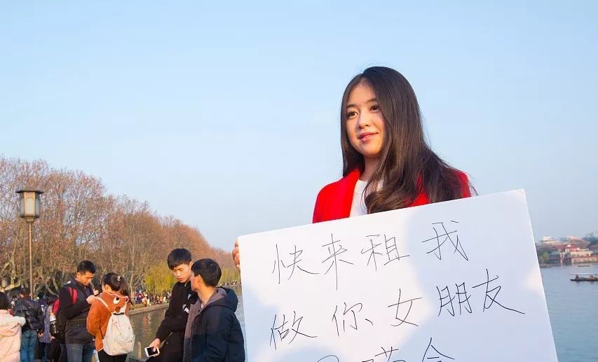 杭州单身女孩在西湖断桥上举牌 图 | 视觉中国