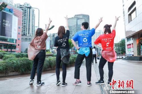 资料图:2019年6月, 青年志愿者们在上海参加“环保跑拾活动”,身体力行宣传垃圾分类知识。申海 摄