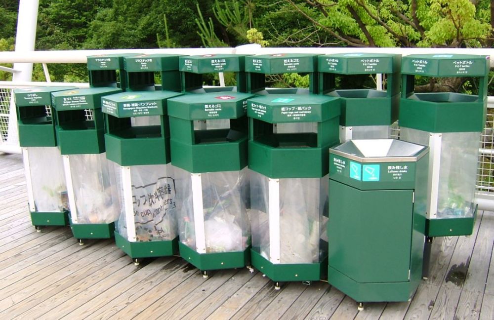 (日本的垃圾回收处,有12个桶。)