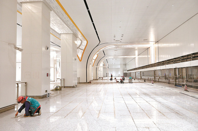 建设者的“匠心”在北航站楼站被“藏”在了细微处。为了让墙缝和地缝连起来就是一条直线,600毫米×900毫米的地砖被微缩到598毫米×898毫米;站台层盲道上的25174个盲道钉,每一颗都是工人手工拧就。