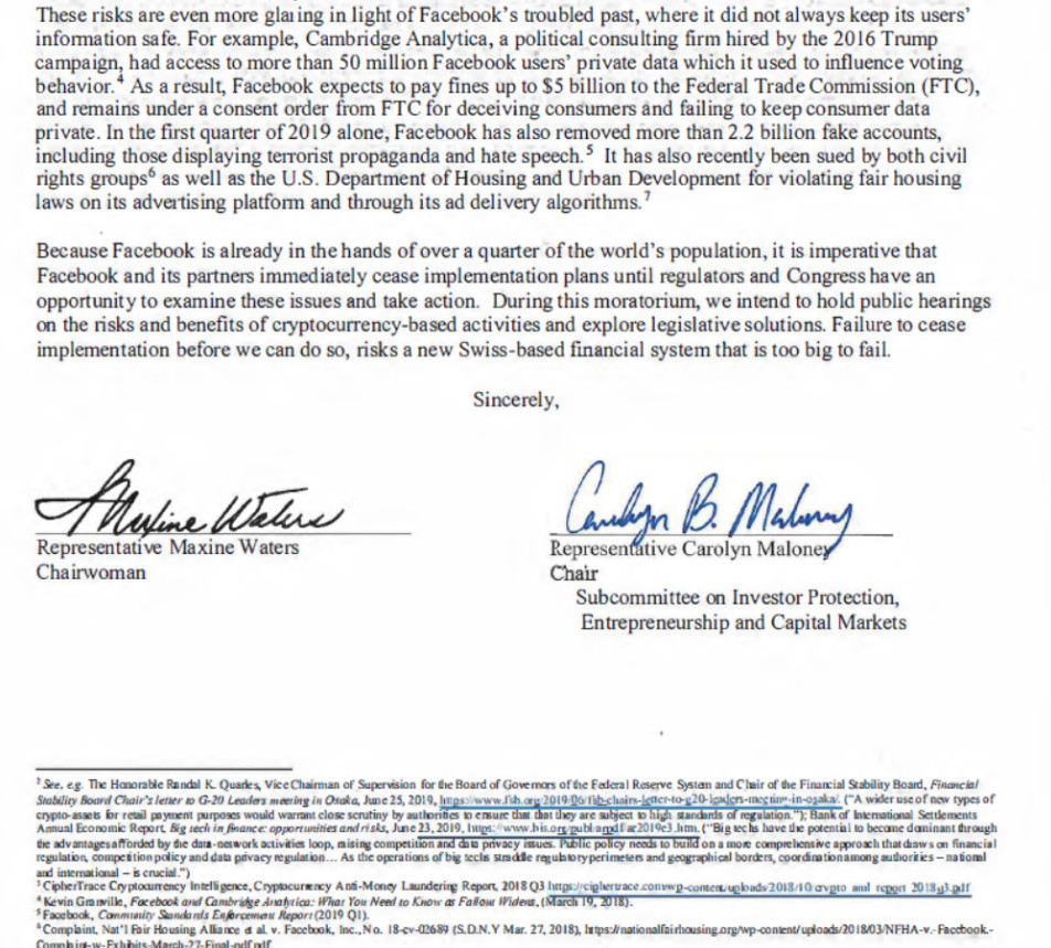 以下为民主党员委员会要求暂停Libra项目的信件编译: