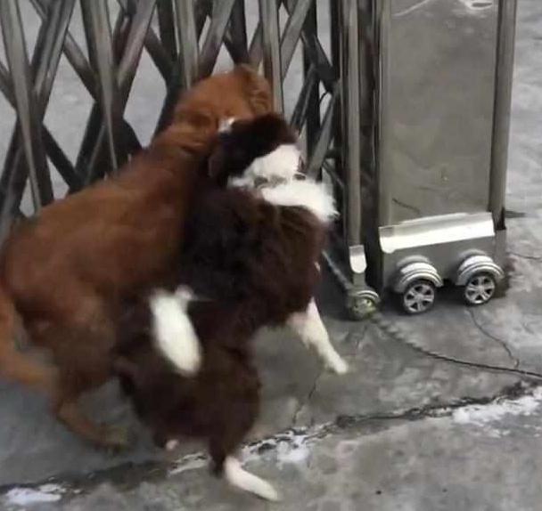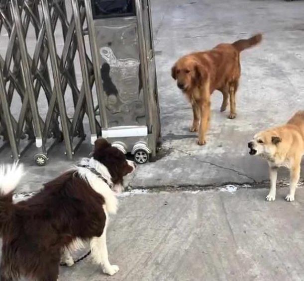于是这天下班之后,这位网友就回到家把自己的边牧牵了出来,而且还特意走到了工厂门口。工厂里的两只狗狗见到网友上前,自然也是快速跑过来的,但是看到旁边有一只边牧,两只狗狗也收敛了很多。这只边牧仿佛知道自己家的主人被这两只狗狗欺负,于是便立刻冲了上去一各打两个。