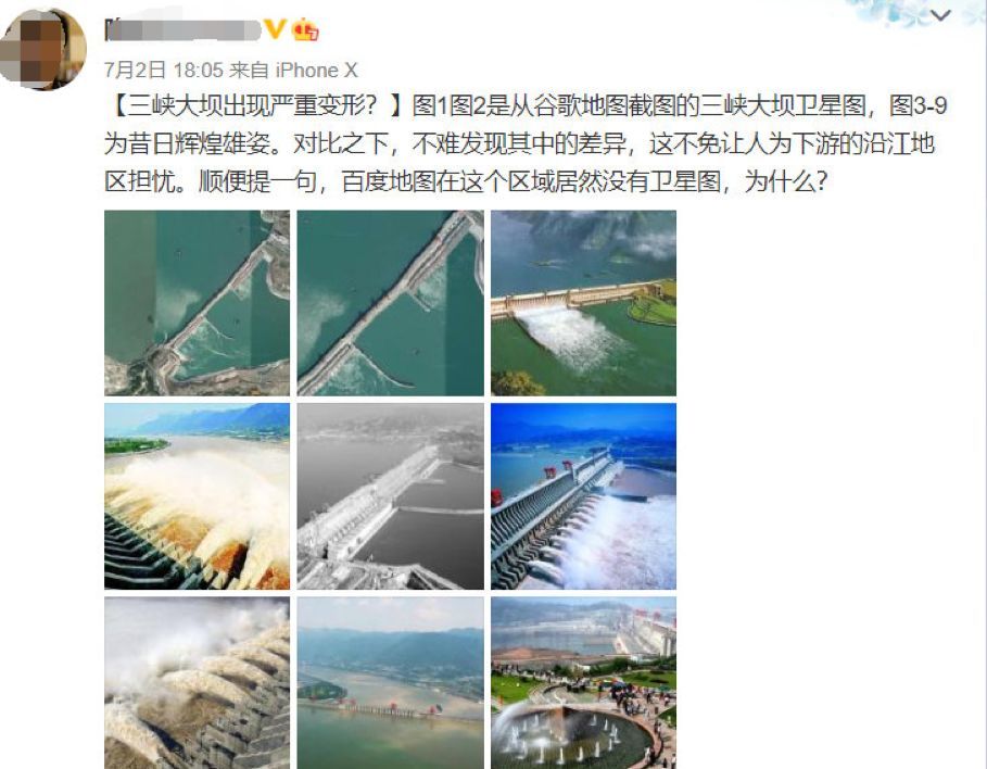 事情的经过是这样的,就在3天前的7月1日,境外一个反华账号突然发帖宣称“三峡大坝已经变形,一旦溃堤,半个中国将生灵涂炭”。