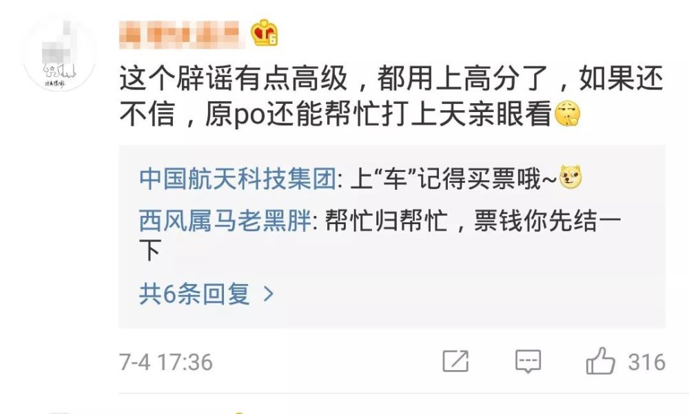 还有网友表示这个辟谣真的太高级了,居然都惊动高分卫星了,如果连这个也不信,那只好再次求助于中国航天科技集团把别有用心造谣传谣的人送上天亲眼查验了。