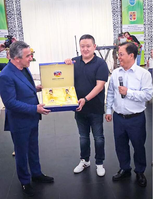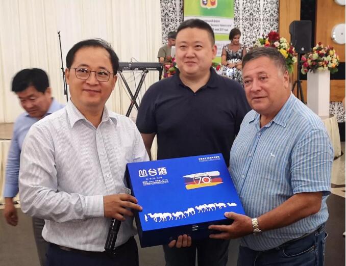 中华文化促进会副主席、万里茶道(国际)协作体执行主席郭杰、中国邯郸丛台酒业营销有限公司总经理郭维,向俄罗斯国际合作协会主席谢尔盖·卡拉什尼科夫、卡斯皮斯克市市长维塔利·维克托罗维奇、蒙古国交通运输发展部长恩赫阿木格楞等赠送第一批珍藏纪念酒,现场报以热烈掌声,嘉宾们也第一次品鉴到丛台酒的魅力。