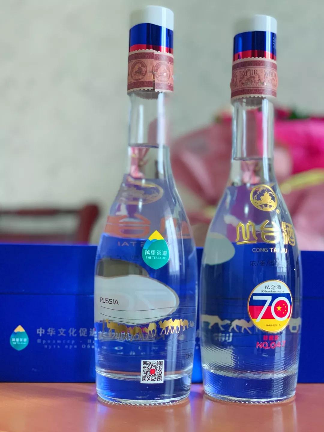 作为此次“万里茶道”国际论坛指定用酒,丛台酒业为纪念中俄建交70周年特别定制限量700瓶珍藏版纪念酒,瓶身以中俄国旗颜色为主色调,融入驼队、万里茶道、70周年及唯一编号等元素,时尚大气、简洁明快;传统工艺精心酿造、酒质高雅悠长,受到各界嘉宾高度赞誉。