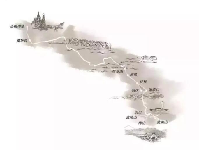 “万里茶道”始于17世纪,从中国福建武夷山出发,绕湖南、湖北、江西,经河南、山西、河北、内蒙古,抵达蒙俄边境的通商口岸恰克图,横穿整个西伯利亚地区,抵达叶卡捷琳堡、莫斯科和圣彼得堡,再通往中亚和欧洲各国。这条长达1.3万公里的“世纪动脉”,在俄罗斯历史中被称为“伟大的中俄茶叶之路”。