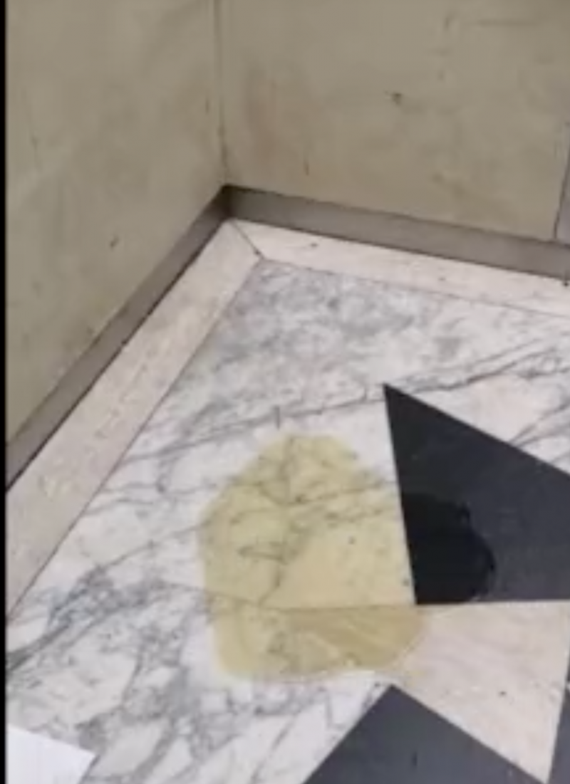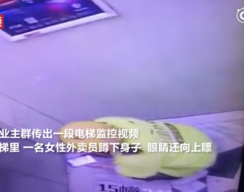 4日,杭州某小区业主在电梯内发现一滩尿,本以为是狗在电梯内撒尿。狗主人调取监控后发现,一位女外卖员在电梯内蹲下身子,起身后地面上留下黄色液体。随后有业主指出,该黄色液体疑似女外卖员在电梯内撒尿。