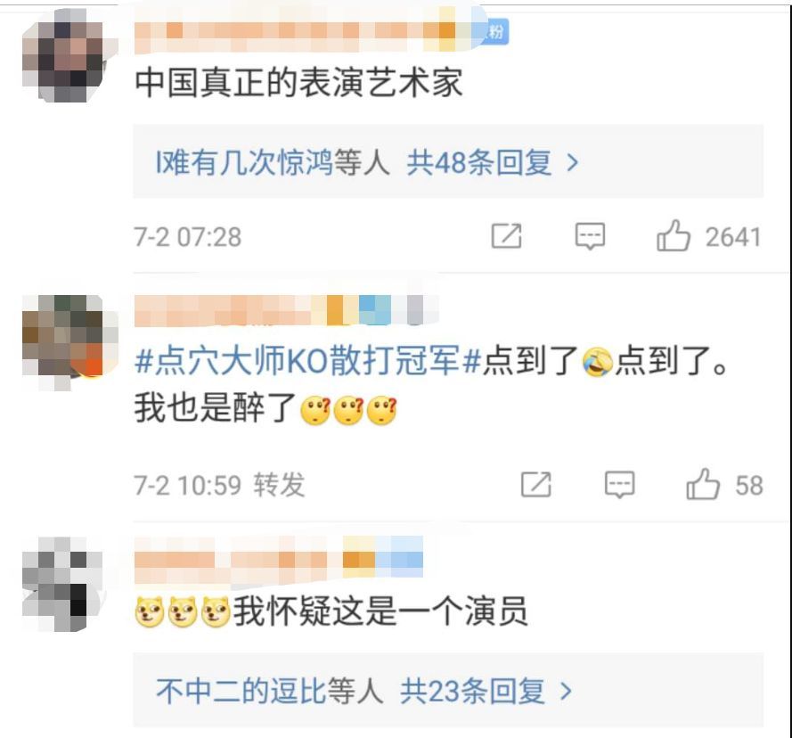 ①以上内容参见:《点穴大师KO散打冠军, 绝世神功用来打“演员”?》,新京报2019年7月2日;《“点穴大师”秒杀“散打冠军”,演得太过了》,新京报2019年7月3日。