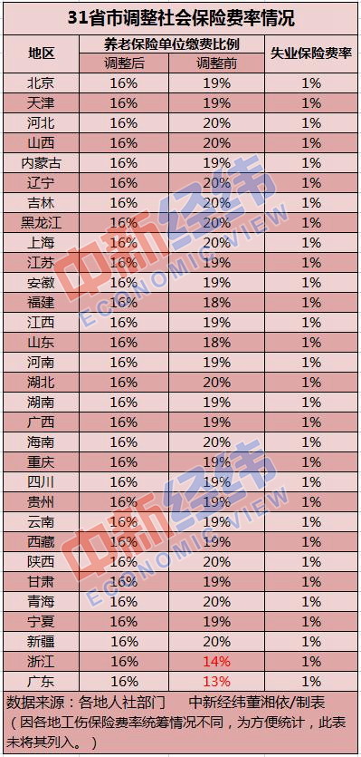 31省份全部调整社保费率 粤浙两省将稳步过渡