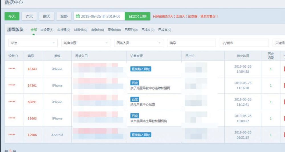 抓取系统后台,可看到访客搜索的关键词、手机号等隐私信息。图/新京报网