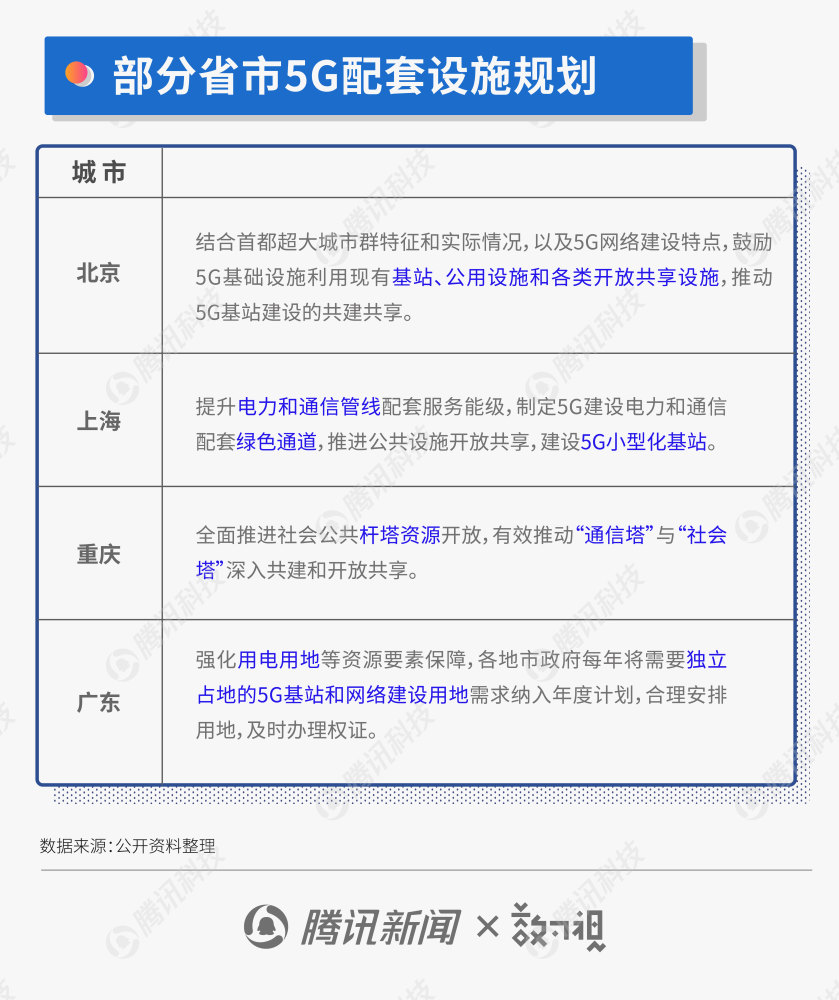为了助力5G部署工作的顺利开展,各省市纷纷结合地方特点,通过提升电力、通信等配套设施的运行能力,为5G的发展保驾护航。